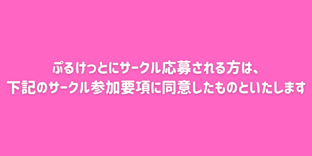 ・サークル出展を辞退する場合は、開催日の一週間までにぷるけっと実行委員会までご連絡ください。連絡なしでの辞退をされたサークルはペナルティとして次回以降の当選率が下がる可能性がありますのでご注意ください。